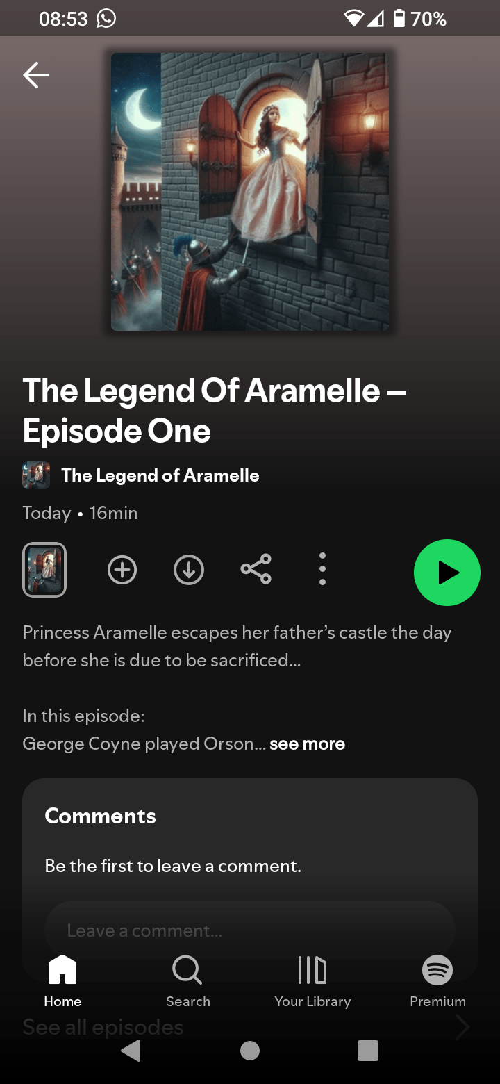 The Legend of Aramelle is now live! And can be listened to here on WordPress, on Apple podcasts, Spotify or Pocketcasts.